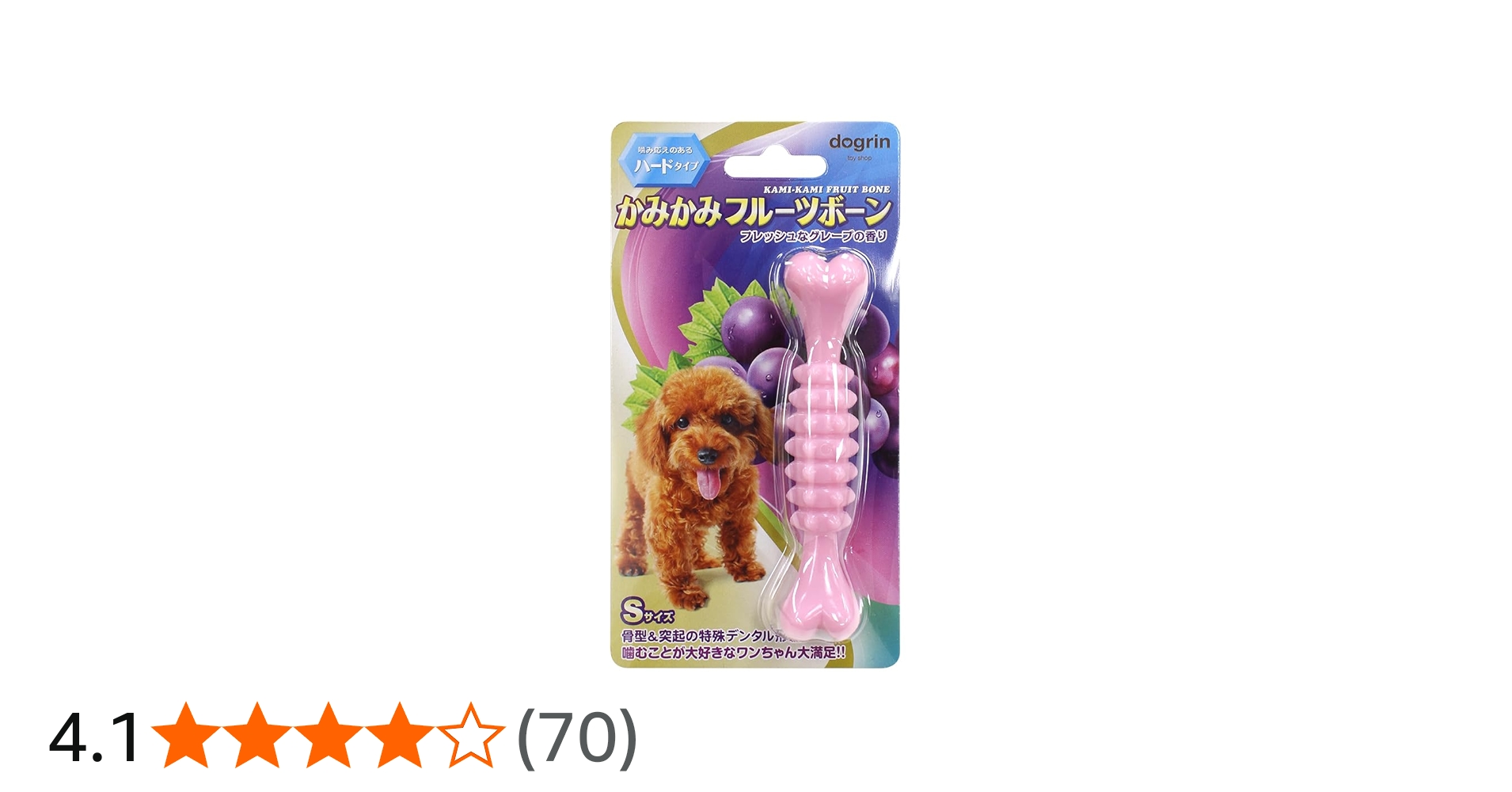 香りのデンタルトーイ骨型&突起の特殊デンタル形状。噛むことが大好きなワンちゃん大満足。適度な固さのセミハードタイプで、満足感のある噛み心地。わんちゃんが喜ぶグレープフレーバー。